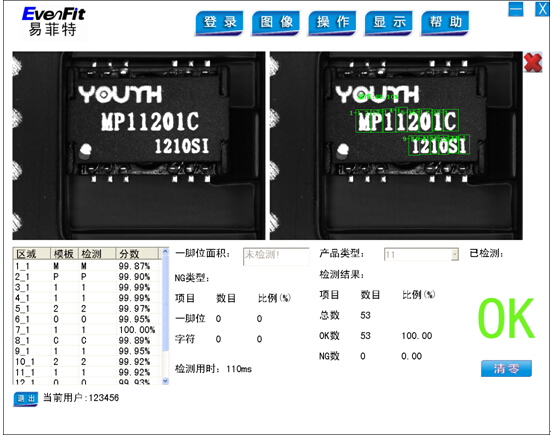 六、系統主要技術特點 1.操作界面清晰明了,簡單易行,只需簡單設定即可自動執行檢測; 2.檢測軟件及算法完全自主開發,系統針對性強; 3.可靈活設置檢測模板、檢測范圍; 4.可選擇局部檢測功能,提高檢測速度; 5.專業化光源設計,成像清晰均勻,確保檢測任務完成; 6.支持多種型號產品的檢測、具備產品在線自動搜索等功能; 7.安裝簡單;結果緊湊,易于操作、維護和擴充; 8.可靠性高,運行穩定,適合各種現場運行條件。 9.基于PC平臺,系統可擴充性強,可擴展其他功能。